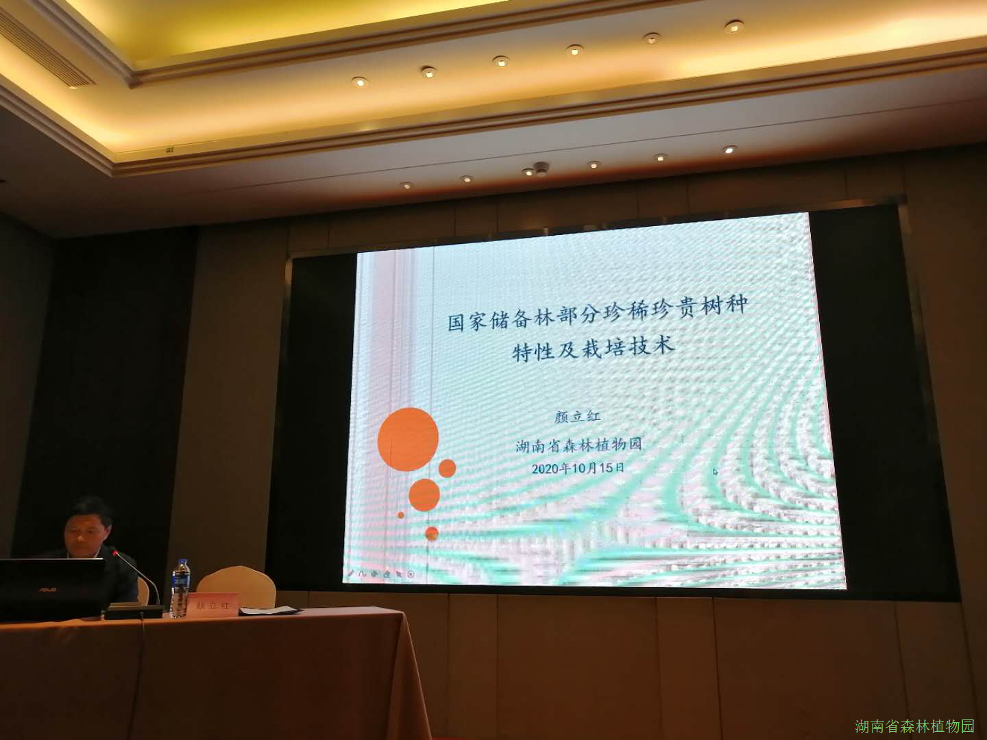 2020年10月15日,由湖南省林业局主办的全省国家储备林基地建设培训班在长沙开班,我园颜立红研究员及植物保育利用研究所部分科技人员参加学习。在本次培训班上,颜立红研究员作了题为《国家储备林部分珍稀珍贵树种特性及栽培技术》的讲课,随后,省局外资办廖科主任对中央预算内林业基本建设投资木材战略储备基地项目年度《实施方案》、《作业设计》编制要点等进行详细解说,各有关县市区林业局业务主要负责人及项目实施单位技术骨干参加此次会议。