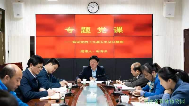 为认真学习宣传贯彻党的十九届五中全会精神,确保党中央和省局各项决策部署在植物园落地见效,11月5日上午,园党委书记彭春良以《认真学习贯彻党的十九届五中全会精神,描绘植物园新篇章》为题,为第一支部全体党员同志讲党课。