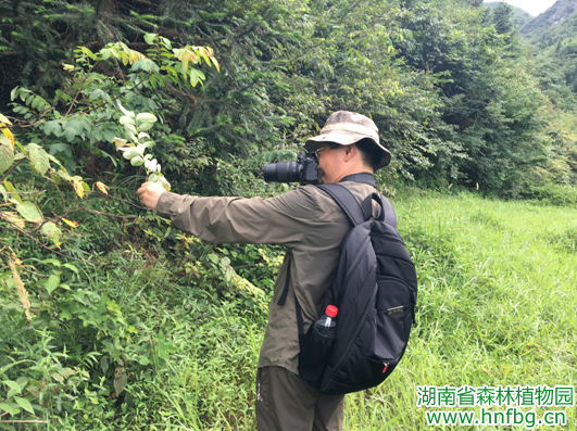 7月19日,受省林业厅委托,由我园植物保育利用研究所颜立红研究员带队,一行三人来到溆浦县开展林木种质资源调查工作。此次调查共历时四天,冒高温酷暑辗转统溪河、圣人山自然保护区等多地,发现香果树、伞花木等国家保护植物分布若干处。在完成林木种质资源调查任务的同时,采集植物枝条、种子进行迁地保育。受汛期影响,下一阶段工作将在8月继续。