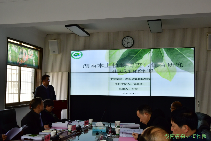 2020年12月25日,“湖南本土植物清查与保育研究项目成果评价会”在湖南省森林植物园办公楼二楼会议室举行,会议邀请了湖南省林业局总工程师王明旭、科处长姜芸、科外处调研员、省林学会秘书长熊四清、野保处副处长魏营参加项目成果评价,评价会专家组由湖南环境生物职业技术学院、亚欧水资源研究利用中心、湖南师范大学、湖南省林业科学院、湖南省农科院、湖南省农业大学及南岳衡山国家级自然保护区管理局的7名相关专家、教授组成,我园彭春良书记、刘玮主任、康用权主任以及项目组成员参加本次评价会,会议由林学会秘书长熊四清主持。