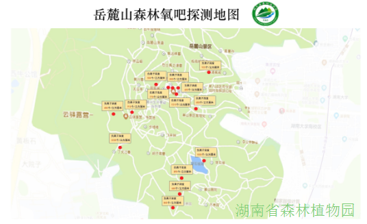 湖南长株潭城市群森林生态系统国家定位观测研究站(下简称长株潭生态站)自2008年开展长株潭范围内定位观测研究,2015年陆续开展城市森林氧吧探测活动,2016年成为国家林草局负氧离子监测试点站。长株潭生态站科技人员先后在浏阳大围山、湘潭昭山、宁乡青羊湖等地进行森林氧吧探测活动。近日,科技人员前往岳麓山麓山寺、穿石坡湖、清枫阁等多处地点进行森林生态氧吧探测活动,其中麓山寺 负氧离子含量为1510个/cm3,穿石坡湖负氧离子含量为1050个/cm3,此次探测活动为岳麓山风景名胜区开展生态康养提供了坚实的科技支撑,更为湖湘地区开展生态康养提供坚实的科技支撑。