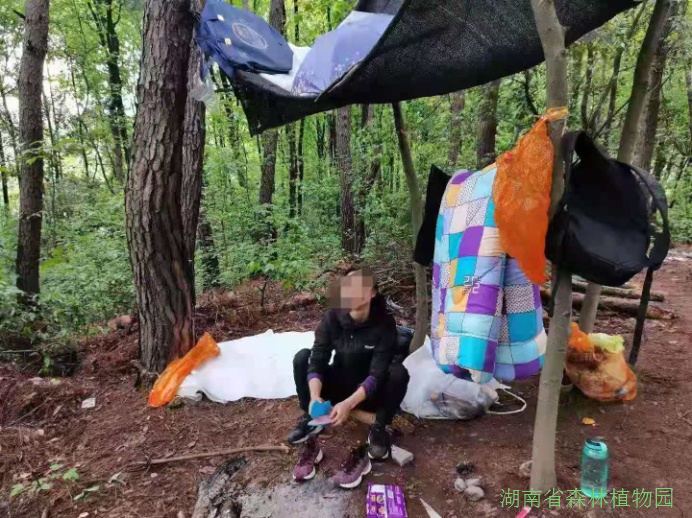 名花节、清明节期间,安保处工作人员在巡山时发现天际岭蓝莓园山坡最高处,有一流浪人员留宿的物品及点火取暖的痕迹。分管领导康用权主任高度重视,要求安保处迅速排查,并立即与洞井派出所报告,通过调取监控,连续两天追踪轨迹,安保处工作人员昼夜蹲守,终于发现了线索,掌握了该名流浪人员的外型特征。通过多次比对,在4月6日查看监控时发现该名流浪人员踪迹,随后安保处工作人员和洞井派出所民警一起到现场进行了处置,询问了流浪人员的情况,将其带回派出所进一步调查处理。安保处工作人员对现场进行彻底清理,消除复燃风险。
