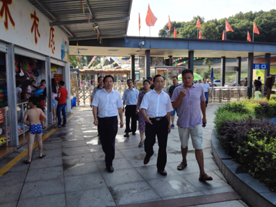 柏方敏一行来到乐民水上乐园,听取负责人的安全生产工作情况的汇报,并实地检查了医务室、游泳池、冲浪池、安全通道、游客餐厅等部位的安全设施配备情况,此外还详细了解安全生产责任制的落实、应急防范的措施、人员的配置等内容。