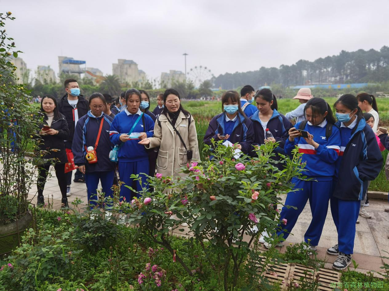 第二站,同学们来到名花广场。自然教育中心的副主任黄秀教大家认识月季和玫瑰,她告诉同学们从植物学角度来讲,“月季花”,“玫瑰”是属于蔷薇科蔷薇属的两种不同的花。那么怎么分辨区分月季和玫瑰呢?黄秀副主任根据玫瑰和月季的特征教大家简单区别一下:“月季花”为直立灌木,枝有皮刺,叶光滑,四季开花,花色多。“玫瑰”虽也是直立灌木,但是枝条多皮刺和刚毛,叶有褶皱,春季一季开花,花色多为红色和白色。