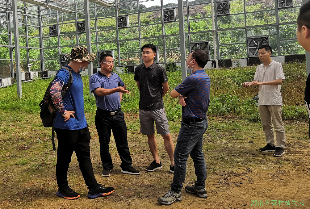 为加快温室内植物资源建设,提升我园物种保育能力及保育水平,我园计划联合广西壮族自治区中国科学院广西植物研究所,共同建设中国苦苣苔科植物保育中心湖南分中心,场地设置在我园科研温室高山植物馆内。2021年6月8日,广西壮族自治区中国科学院广西植物研究所园林园艺中心副主任、研究员韦毅刚,研究员温放一行二人来我园就湖南分中心的合作事宜进行考察交流。园领导彭春良书记、胡俊东副主任以及园建处陈迎辉主任、信息所牟村所长等陪同。