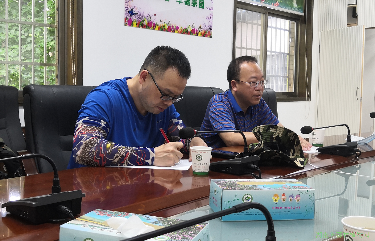 胡俊东副主任对广西植物研究所一行同仁的到来表示欢迎,并对我园科研温室建设、植物资源建设、植物保育等相关工作等进行了简要介绍。广西植物研究所园林园艺中心副主任、研究员韦毅刚,研究员温放介绍了广西中国苦苣苔科植物保育中心的相关情况,并简单阐述了中国苦苣苔科植物保育中心湖南分中心的建设构想。双方就中国苦苣苔科植物保育中心湖南分中心的建设达成一致,提出协同合作和共同发展的美好愿望。