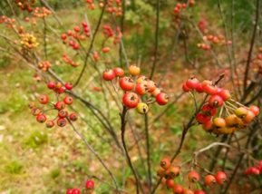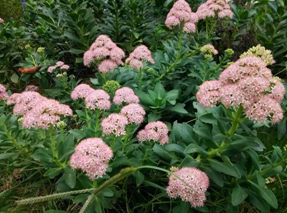 “旧花”未谢,而新的观花、观果植物又上线了,那便是八宝景天和红果腺肋花楸了。八宝景天是景天科植物,多肉家族的一员,肉肉的叶片、紧凑的株型,光看它肉肉的样子就足够了,而它的花却也十分美丽,花期8~10月,粉红色的伞房花序顶生,花序直径达10~13cm,花朵密集,是布置花坛、花境和点缀草坪、岩石园的好材料。红果腺肋花楸花后不久幼果膨大,直到最近才开始变红,红色果实冬季宿存枝头,是优良的观果植物。