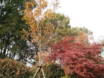 植物园西门坡道路旁,新栽了一排长相新奇的小树:树上挂满“鱼骨形”叶片,像是被虫子吃的只剩下“可怜”的骨架呢,或许这是大自然的创意剪裁,故意让它与众不同;叶子或黄或红,一树彩色,奇特又好看。而如果我们继续保持观察,你或许会发现,当枫香、红枫、银杏这些同样美貌的彩叶树木纷纷落叶,只留下光的树干,而它却把彩叶一直留到春天,给冬天增添一抹亮眼的彩色。这一新奇的植物叫“娜塔栎”。