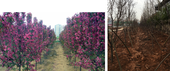 大家也许都注意到了,在名花广场东边,新种植了两排整整齐齐的树苗,它们就是不远千里从山东来到湖南安家的现代海棠。
