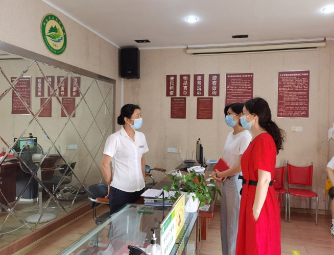 为进一步落实省林业局局务会议及园党委关于疫情防控专项监督工作会议精神,落实落细疫情防控各项工作要求,8月16日上午,园纪检监察室联合人教处在全园范围内开展疫情防控专项监督检查。检查组对标对表疫情防控工作要求,深入西北门游客中心、验票口、保安岗亭及安保处、旅游中心等窗口单位进行督查,采取现场询问、实地察看的方式,重点检查了窗口单位值班人员的口罩佩戴、着装情况、台账登记、场地消杀和人员车辆管控等疫情防控措施落实情况。对于发现防控措施落实不细不严不实的问题,及时进行提醒,督促立即整改。