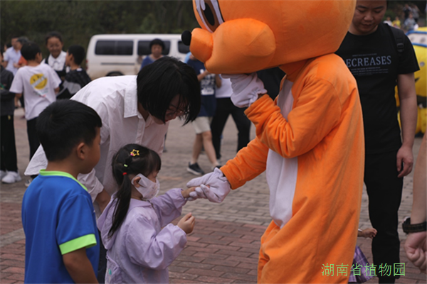 活动包括卡通人偶巡游、cosplay秀两大部分。超级飞侠、虹猫、蓝兔、山猫吉咪等喜闻乐见的经典卡通形象,穿梭在向日葵花海中,引起了游客特别是小朋友们的围观,樱花湖广场的cosplay秀更是将活动的气氛推向了高潮,与虹猫握个手,和蓝猫击个掌,再与动漫人物合个影,顺便猜猜她是哪个番的角色。在欣赏cosplay舞蹈秀的同时,省植物园还为小朋友们准备了好吃的糖果作为节日的小惊喜。
