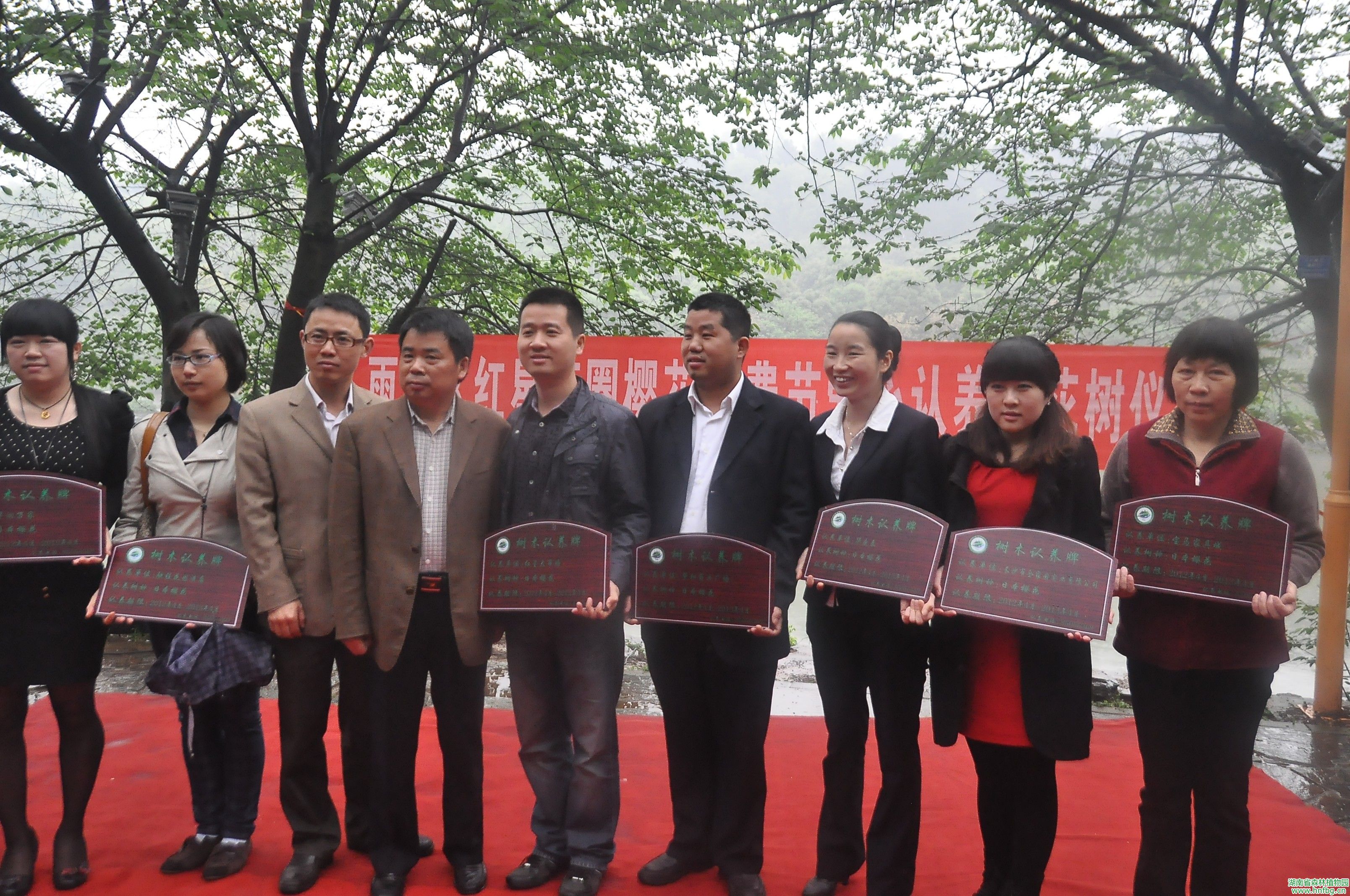 省森林植物园刘沙副主任、区商务和旅游局李泽友书记向23家认养企业授牌