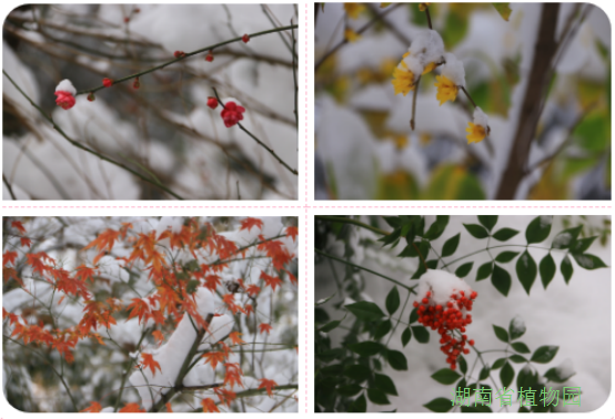 2021年长沙的初雪纷纷扬扬落下或飞扬或盘旋,一片银装素裹装饰着植物园,一派瑞雪兆丰年的喜人景象!一树树的琼枝玉叶,被冰雪覆盖的花与果晶莹剔透、形态万千,仿佛进入冰雪森林中的童话世界!