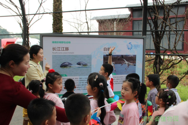 我园自然教育中心副主任黄秀老师给同学们做了精彩的解说,首先黄秀老师介绍了“世界野生动植物日”是联合国大会为了提高人们对世界野生动植物的认识而设立的节日,今年的3月3日是第9个世界野生动植物日,我们中国的活动主题就是现在大家看到的展板上写的“关注旗舰物种保护,推进美丽中国建设”。 随后,黄秀老师给大家介绍了长江江豚、鸳鸯、画眉、水杉、珙桐、隆平水韭、湘妃水韭等珍稀的动植物。同学们都很认真地听黄秀老师的讲解,黄秀老师的讲解内容深入浅出,风趣幽默,互动式的问答,激发了同学们极大的兴趣,现场气氛非常热烈。