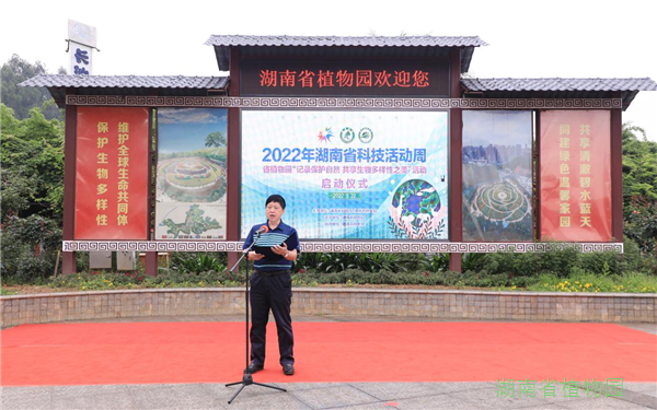 在2022年全国科技周到来之际,围绕“走进科技 你我同行”这个主题,5月22日上午,由湖南省科技厅、湖南省林业局共同主办,我园承办、明德洞井中学协办的2022年湖南省科技活动周省植物园“记录保护自然 共享生物多样性之美”活动启动仪式在我园名花广场举行,为今年我园科技周系列活动拉开帷幕。