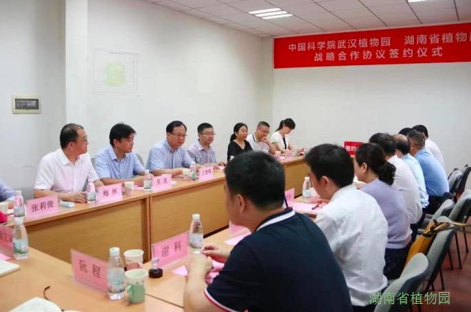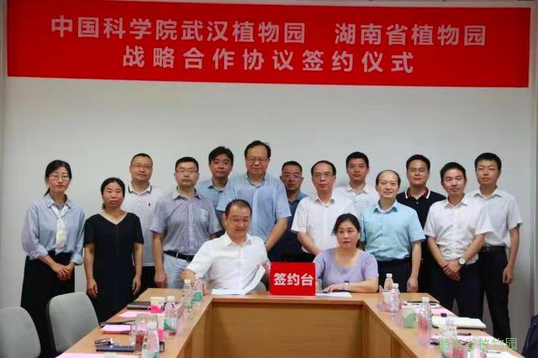 7月8日,中国科学院武汉植物园与湖南省植物园战略合作协议签约仪式在湖北武汉举行。中国科学院武汉植物园主任王青锋,副主任刘宏涛及综合办公室、园艺保育中心、驯化保育部、科普开放中心相关负责人,湖南省植物园主任刘玮,副主任胡俊东,党委委员康用权及综合部、植物保育研究所、城市生态研究所、园艺中心、旅游公司相关负责人等出席签约仪式。