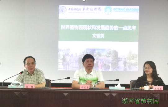 近日,国际植物园保护联盟(BGCI)中国项目办文香英主任应邀来我园做学术报告,分享关于国际植物园、国家植物园现状与发展趋势,园主任刘玮主持,园党委书记彭春良出席,全园干部职工参与。