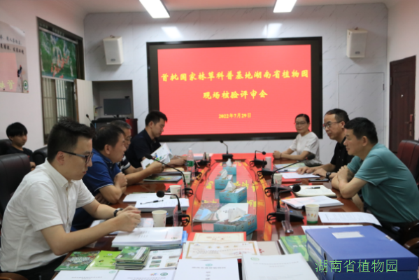7月29日,国家林草局组织核验专家组来我园进行首批国家林草科普基地现场考核评审。专家组由国际竹藤中心副研究员牟少华、湖南省林业科学院研究员田育新、湖南省青羊湖国有林场副场长王伟三人组成。省林业局科技外事处三级调研员陈佳辉、植物园党委书记刘玮、园副主任蒋利洪、省林业局科技外事处三级主任科员曾崇华、自然教育中心负责人及相关工作人员参加现场核验会议。