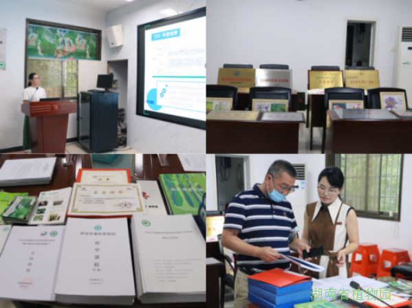 专家组首先现场勘察了紫藤科普长廊、名花广场、科研中心、宣教馆、竹园、枫香大道科普长廊等园区科普硬件设施情况,随后召开了首批国家林草科普基地湖南省植物园科普基地现场核验评审会。专家组仔细查阅了核验材料,听取了自然教育中心主任曾桂梅就我园科普资源、科普活动、科普展馆、科普宣传等方面的详细汇报。