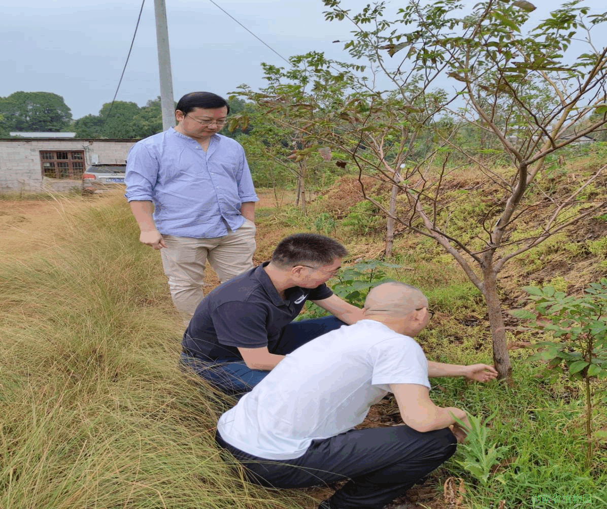 我园景观研究所承担的2022-2024省林业科技创新项目“生态脆弱地区青钱柳等多功能树种定向培育关键技术研究与示范”在湘潭基地实施,由于今年遭遇历史特大高温干旱天气,基地苗木抗旱及病虫害防治压力很大,新成立的景观所对这个项目高度重视,罗军所长多次要求要举全所之力给予支持, 圆满完成项目目标任务。9月26日上午,罗军所长、项目主持人陈永安组织景观所相关专业技术人员赴湘潭市鹤岭镇青钱柳标准化栽植基地进行调研。详细了解苗木抗旱及病虫害治理情况,由于抗旱及时、措施得力,目前青钱柳苗木成活率在90%以上,总体长势良好,病虫害也得到有效遏制。根据项目实施要求,技术人员还对青钱柳示范林土壤、环保植物基质进行了样品采集,同时对景观所下一步工作及基地规划建设进行了交流探讨,为景观所后续项目推进奠定了坚实基础。