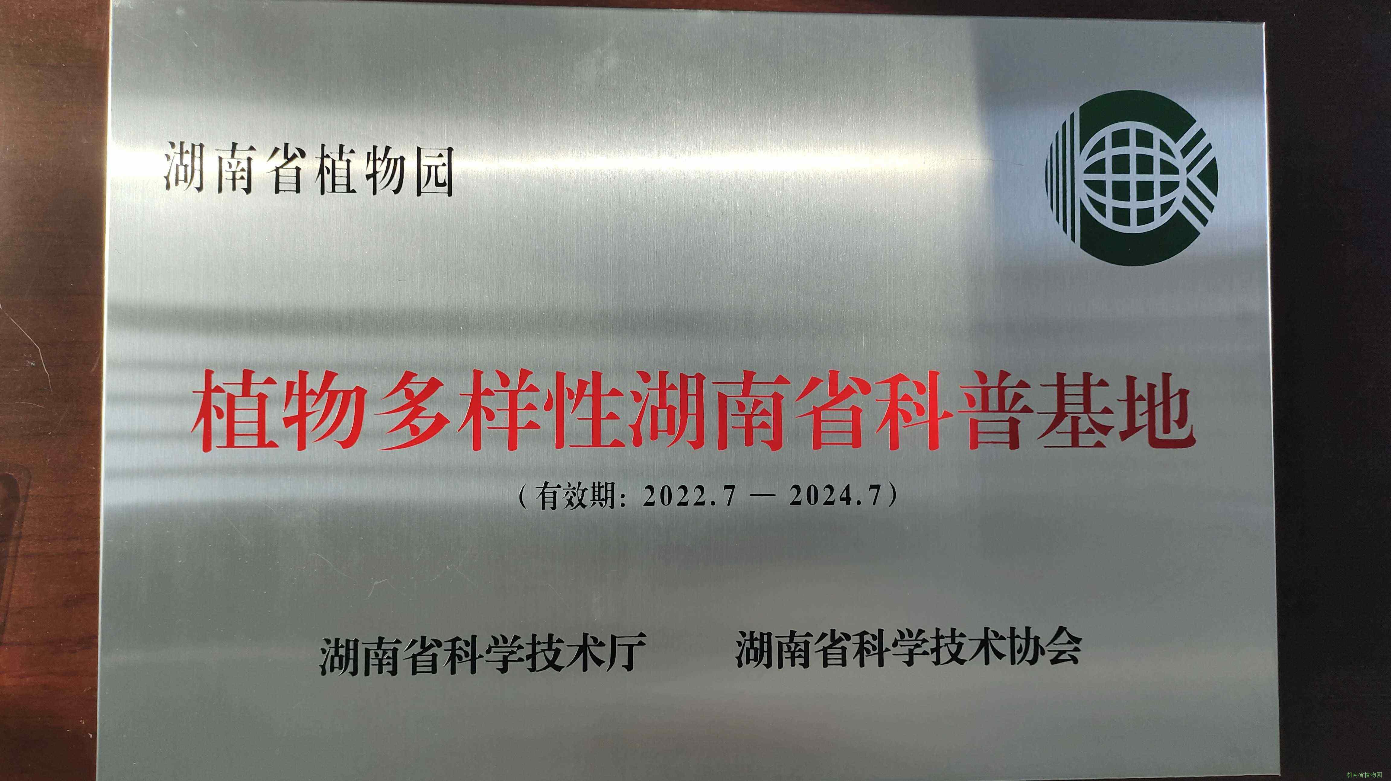 根据《湖南省省级科学技术普及基地管理办法》《关于申报备案2022年度湖南省省级科学技术普及基地的通知》,经单位申报、市州(部门)推荐、专家评审、会议审定,我园备案为湖南省省级科学技术普及基地,被授予“植物多样性湖南省科普基地”牌匾。