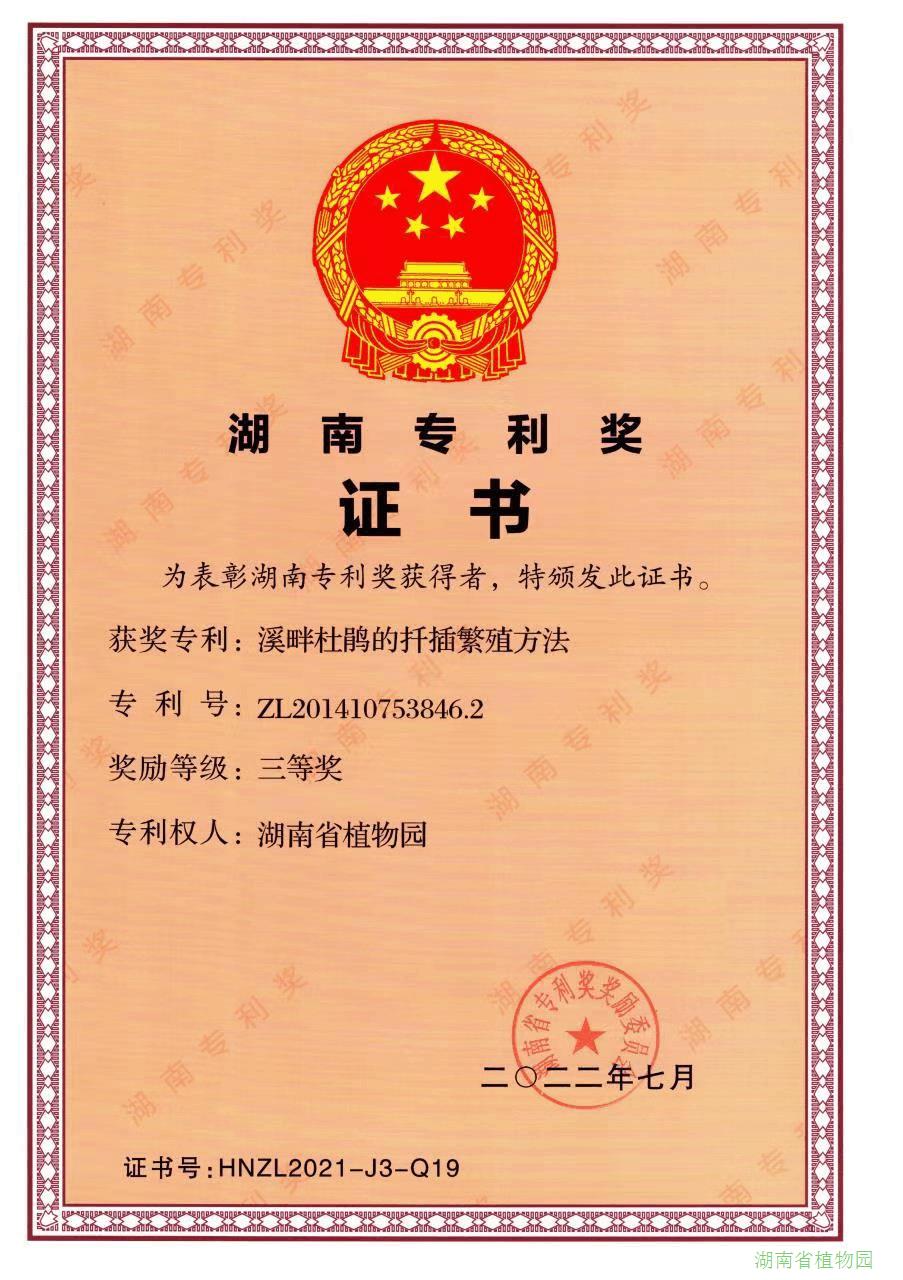 近日,湖南省专利奖奖励委员会下达关于表彰2021年度湖南专利奖的决定,湖南省植物园科技人员申请获得的国家发明专利“溪畔杜鹃的扦插繁殖方法”(ZL 2014 1 0753846.2)荣获湖南专利奖三等奖,该奖项是我省林业行业唯一奖项。省植物园经过多年的技术积累,围绕杜鹃花种质资源创新等核心专利,申请了相关外围专利,包括7项中国专利、5项地方标准及3项软件著作权等,覆盖了繁育、景观构建及监测等多项相关技术,形成全方位的专利保护群,为本专利技术成果的推广应用提供了充分的保障。