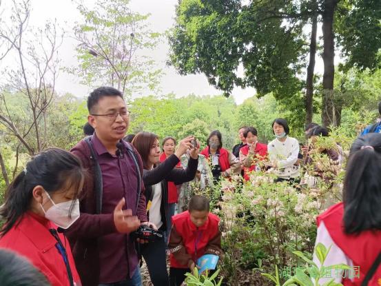 为全面提升2023年湖南生态旅游节暨湖南省植物园樱花节科普志愿者讲解服务水平4月2日,自然教育中心组织春季花展科普志愿者开展了杜鹃花专场培训