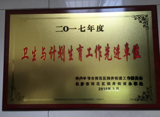 我园荣获2017年度洞井街道卫生与计生工作先进单位