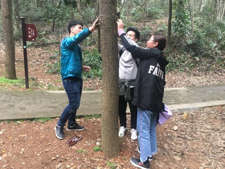 颜立红所长主要在木兰科植物方面进行指导,黄程前所长主要在竹园进行指导。在他们的指导下,科普中心员工的辛苦努力下,加班加点,把1000余块植物铭牌争取在月底全部悬挂到位。