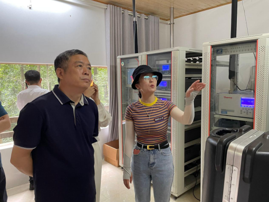 张德琼总工程师一行对长株潭生态站仪器设备运行与数据收集、管理制度、科研进展、人才队伍等方面进行了深度考察。张德琼对长株潭生态站目前积累的成果表示高度赞许,同时提出未来可以与长株潭生态站就生态监测与生物多样性科普等工作开展合作交流。马涛主任对张德琼总工程师提出的建议表示赞同,并表示未来双方发挥各自优势,共创辉煌业绩。随后,廖菊阳副主任应邀前往长沙市绿心区域生态建设现场给予技术指导。