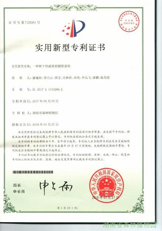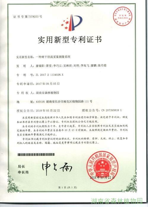 6月19日获悉,由湖南省森林植物园生态景观所廖菊阳研究员等科研人员完成的“一种树干径流量的测量系统”和“一种树干径流采集测量系统”获得国家专利授权,专利号分别为ZL201721133289.X和ZL201721134028.X。