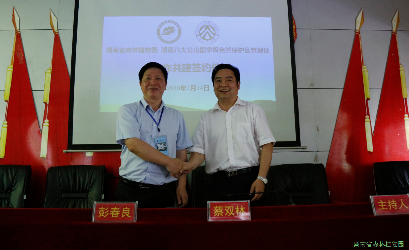 7月13-15日,“濒危植物长果安息香遗传多样性研究与综合保护”研讨会暨“湖南植物园八大公山植物学研究工作站”共建合作协议签约挂牌仪式在湖南八大公山国家级自然保护区隆重举行。中国湿地保护协会、中国野生植物保护协会副会长、原国家林业局野生动植物保护与自然保护区管理司副司长刘亚文、国际植物园联盟(BGCI)中国项目办主任文香英、湖南省林业厅科技外事处调研员省林学会秘书长熊四清、湖南省森林植物园党委书记彭春良、桑植县副县长丁艳伟、湖南八大公山国家级自然保护区管理处主任蔡双林等领导出席,植物园副主任李柏海主持会议。