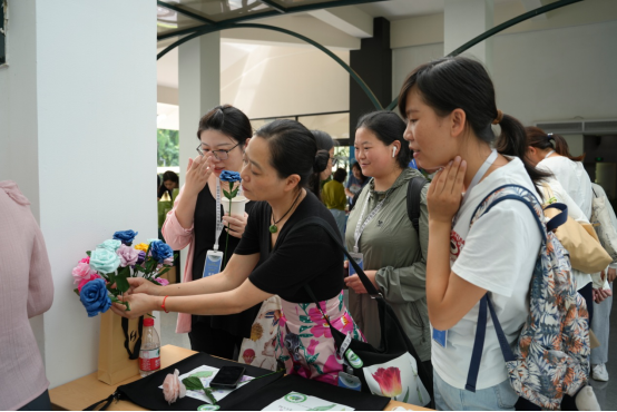 我园自然教育中心在案例分享环节,作了题为“生物多样性保护教育与学校课程的结合——以自然笔记为例 ”的分享,得到同行们的认可。在文创产品展示中,自然教育中心制作的文创产品手绘包和纸艺玫瑰受到了大家的热捧。(撰稿/彭炜 编辑/余帆 编审/周岚)