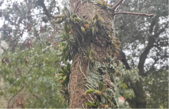 极小种群野生植物具有重要的经济和科学价值,其被发现和保护有助于延缓物种灭绝、维护生态平衡。此次,科研团队在鹰嘴界国家级自然保护区内一株黄连木分枝梢头发现了合欢盆距兰新分布居群,居群数量达到上百株,目前生长状况良好,仍有花朵开放。但其所附生的一个枝条出现干枯,急需采取有效保护措施。(撰稿/朱路 编辑/余帆 编审/周岚)