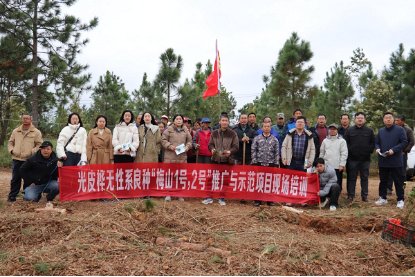 12月12日上午,湖南省植物园园林景观所光皮桦推广项目组一行到回龙圩管理区开展光皮桦无性系良种“梅山1号、2号”推广与示范项目现场培训。