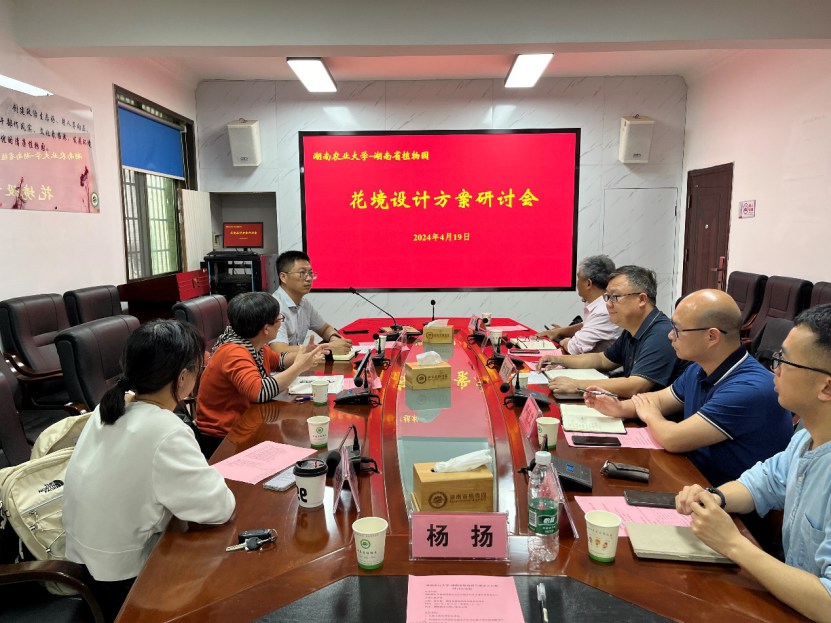 4月19日,园花卉所联合湖南农业大学园艺学院就植物园花卉科研楼周边及部分园区节点花境样地景观设计召开研讨会。会议由园花卉所所长主持,湖南农业大学园艺学院于晓英教授、李炎林副教授,向理理博士及园花卉所相关科研人员30余人参加会议。