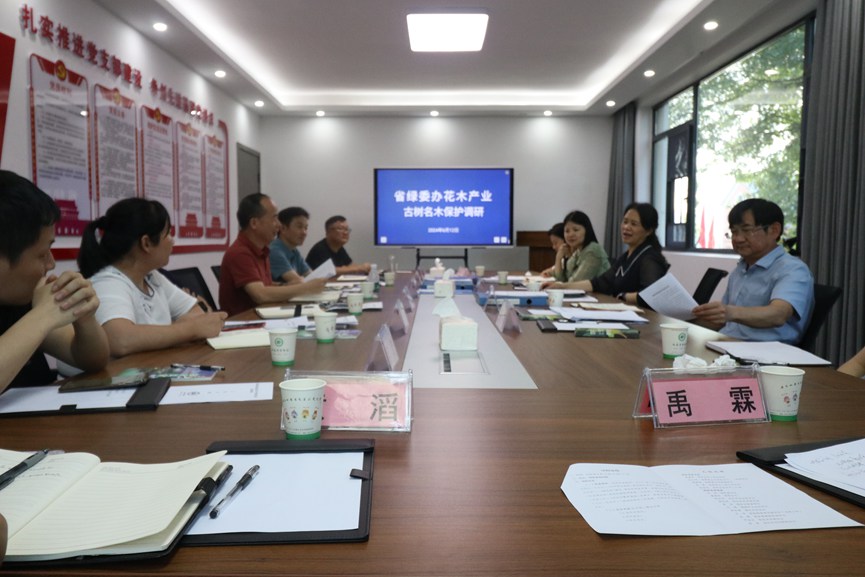 6月12日,省林业局二级巡视员夏艳萍一行来园开展花木产业和古树名木保护工作调研。省绿委办专职副主任、一级调研员欧日明,四级调研员祝梦瑶,园党委书记刘玮、副主任廖菊阳、各有关科研所负责人及省花协秘书长陪同调研。