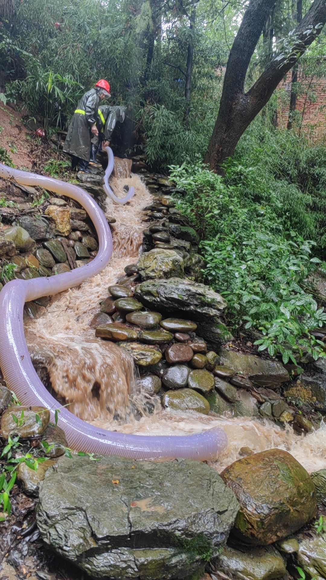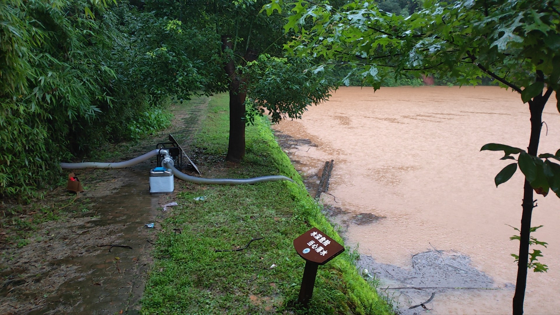 人员现场值守,连夜使用抽水泵控制鸳鸯湖水位,以防湖坝塌陷