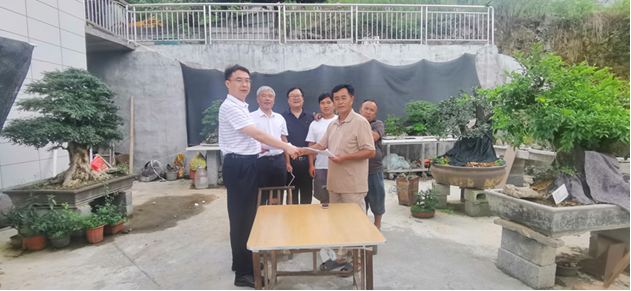 调研组一行实地了解湘西自治州凤凰县金弹子花卉苗木种植专业合作社的产业规模、盆景制作工艺和销售流程,与该合作社签署了“金弹子中小型盆景产业化开发与示范项目”合作协议。与花垣县青瓦村“一村一品”示范点相关负责人就如何利用花卉苗木发展优势、开发“生态庭院+庄园经济”模式、实现线上线下产业互动等方面进行了深入探讨。组织吉首市栗溪寨乡村干部和金弹子产业带头人召开座谈会,认真听取了当地村民通过开发金弹子产业致富的经验介绍,对栗溪寨村支部带领村民与时俱进、开拓创新,将小盆景做成大产业,实现村民脱贫致富,走出乡村振兴新路子的范例给予了充分肯定。