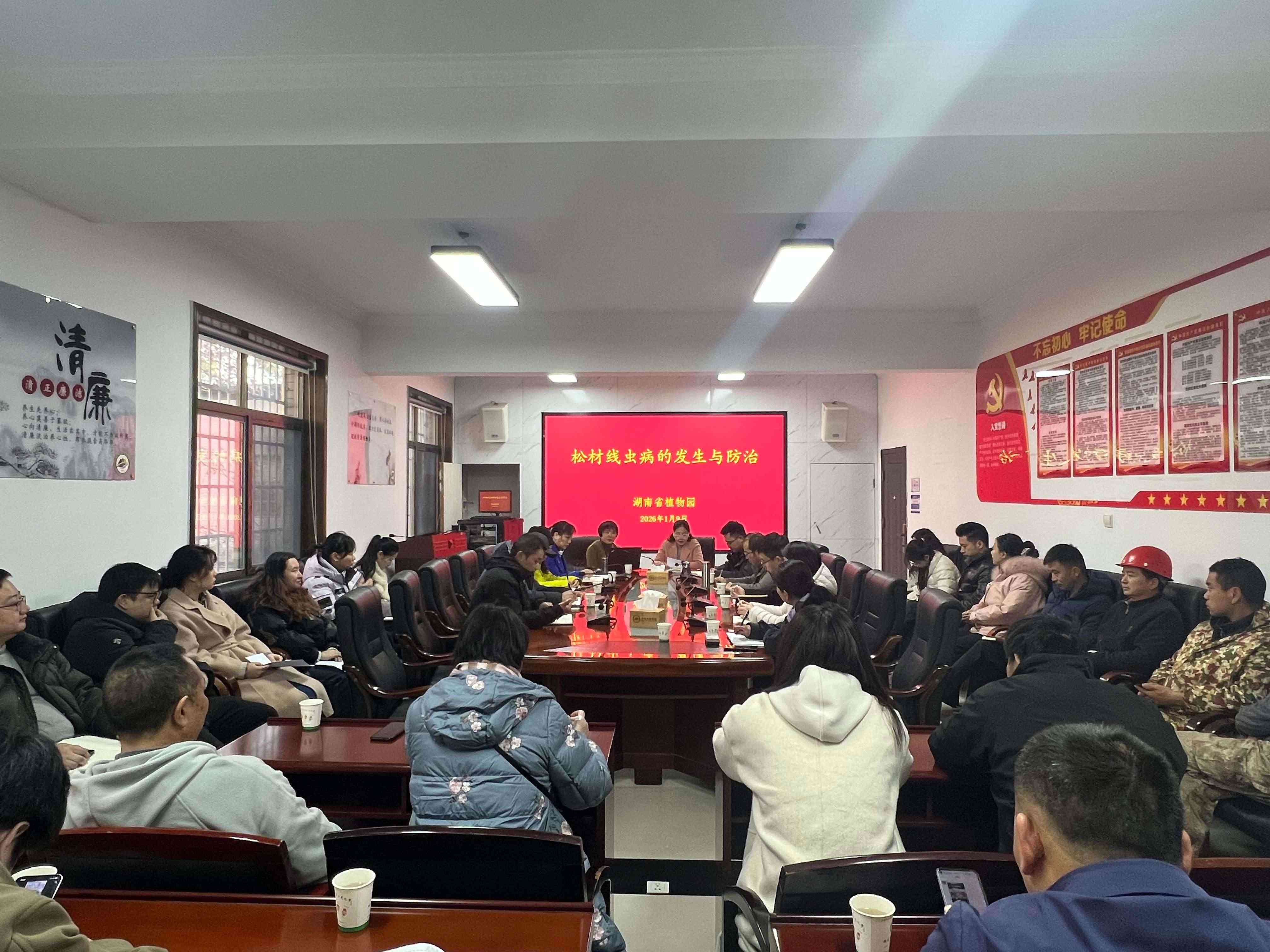 为进一步提升林业生产管理水平,深化对松材线虫病发生规律的认知,科学制定防控策略,1月 8日至9日上午,省植物园特邀湖南省林业局生防站一级调研员戴立霞,开展松材线虫病专题讲座与技术培训。园内科研人员、园艺中心管理人员、湘植公司全体人员及一线劳务人员等30余人参加本次培训。