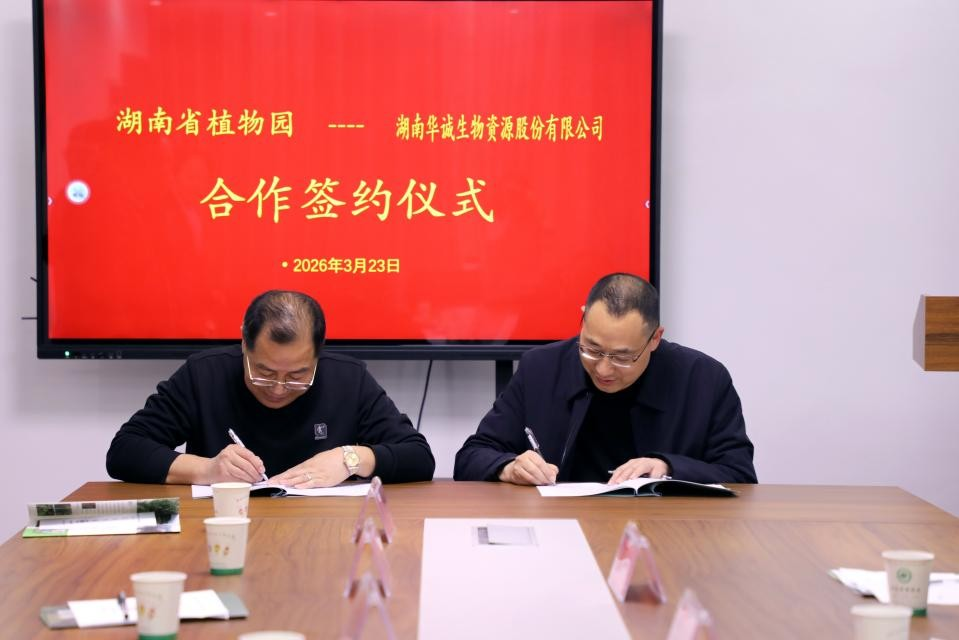 3月23日下午,湖南省植物园与湖南华诚生物资源股份有限公司《罗汉果属植物新品种保护、技术研发及成果转化联合开发项目》合作签约仪式在湖南省植物园隆重举行。湖南省植物园副主任鲁军、湖南华诚生物资源股份有限公司执行董事易德平出席仪式并代表双方签约。
