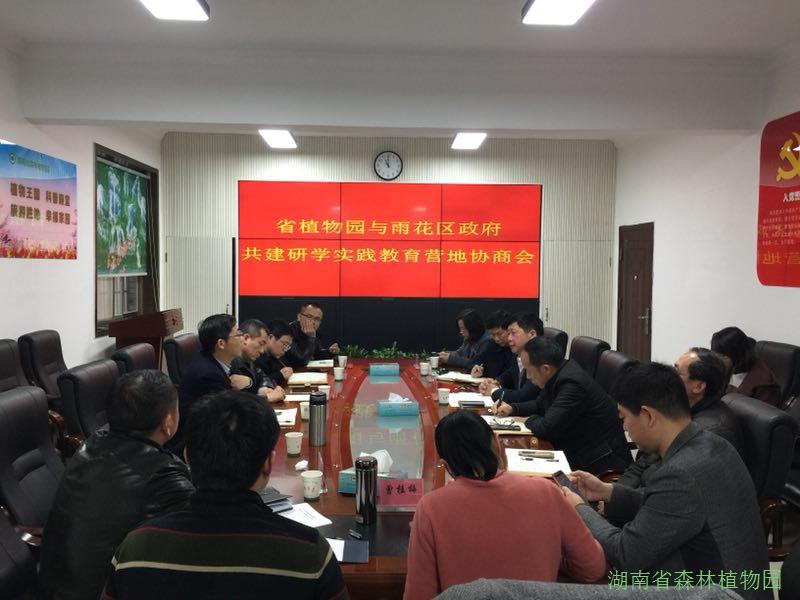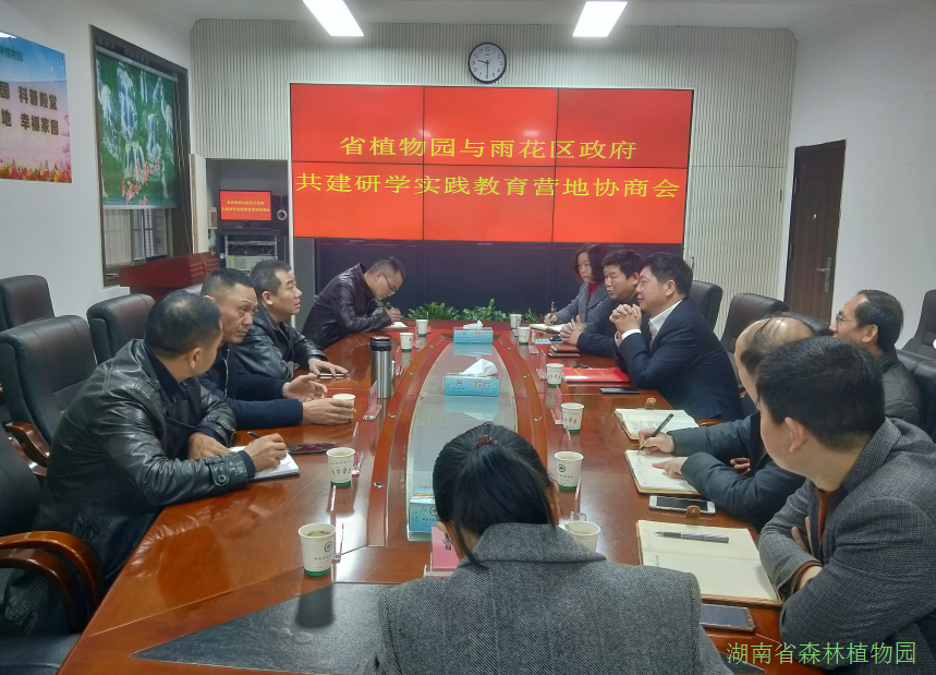 3月5日上午,省植物园与雨花区政府共建中小学生研学实践教育营地协商会在省植物园举行,雨花区分管副区长刘江红、区政府办副主任熊灿、区教育局党委副书记副局长李长青等,省植物园党委书记彭春良、园主任刘玮、园领导郑焱、蒋利洪以及党政办、科普旅游中心、自然教育中心等有关部门负责人出席协商会。