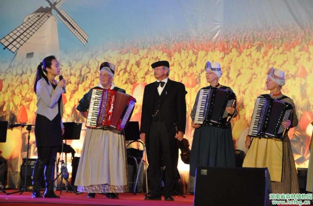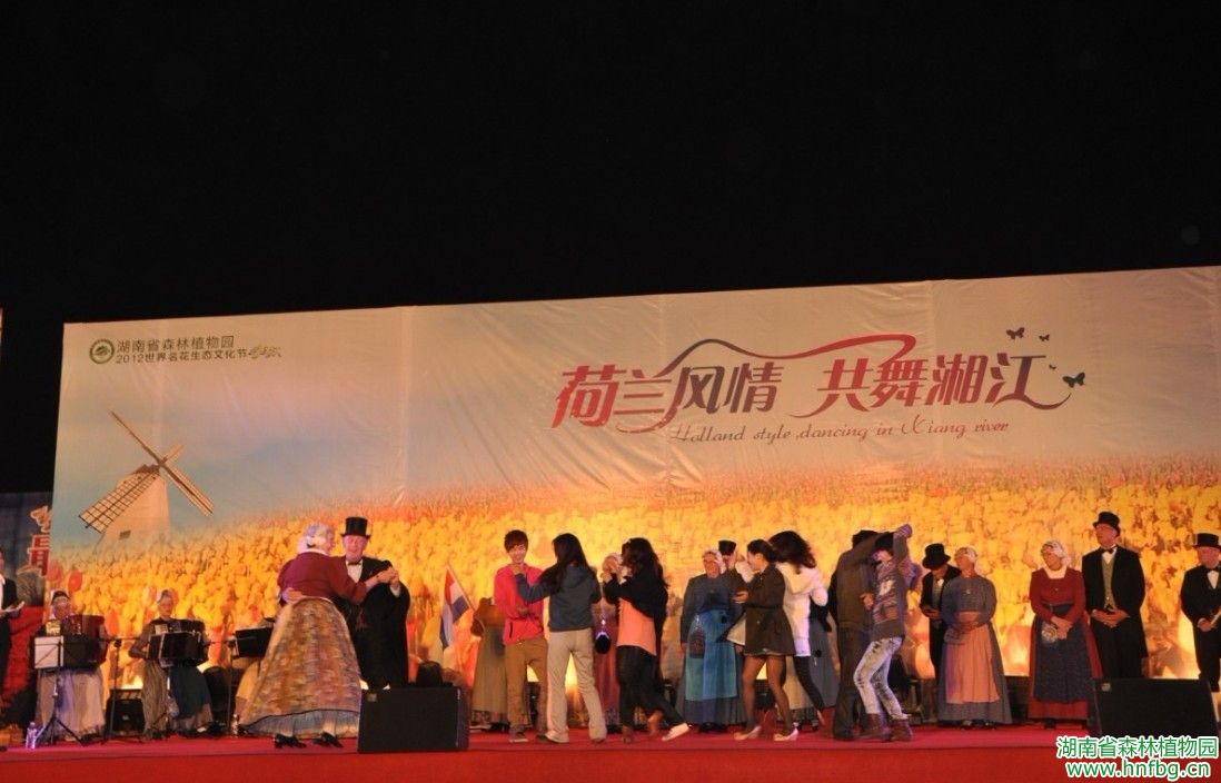 3月27日晚8时,一场“荷兰风情 共舞湘江”的专场歌舞晚会在我园北大门广场隆重举行,远道而来的荷兰弗里斯兰“midwoud”歌舞团18位表演者身着荷兰特色民族服装,载歌载舞,为现场观众带来了不一样的视觉体验。