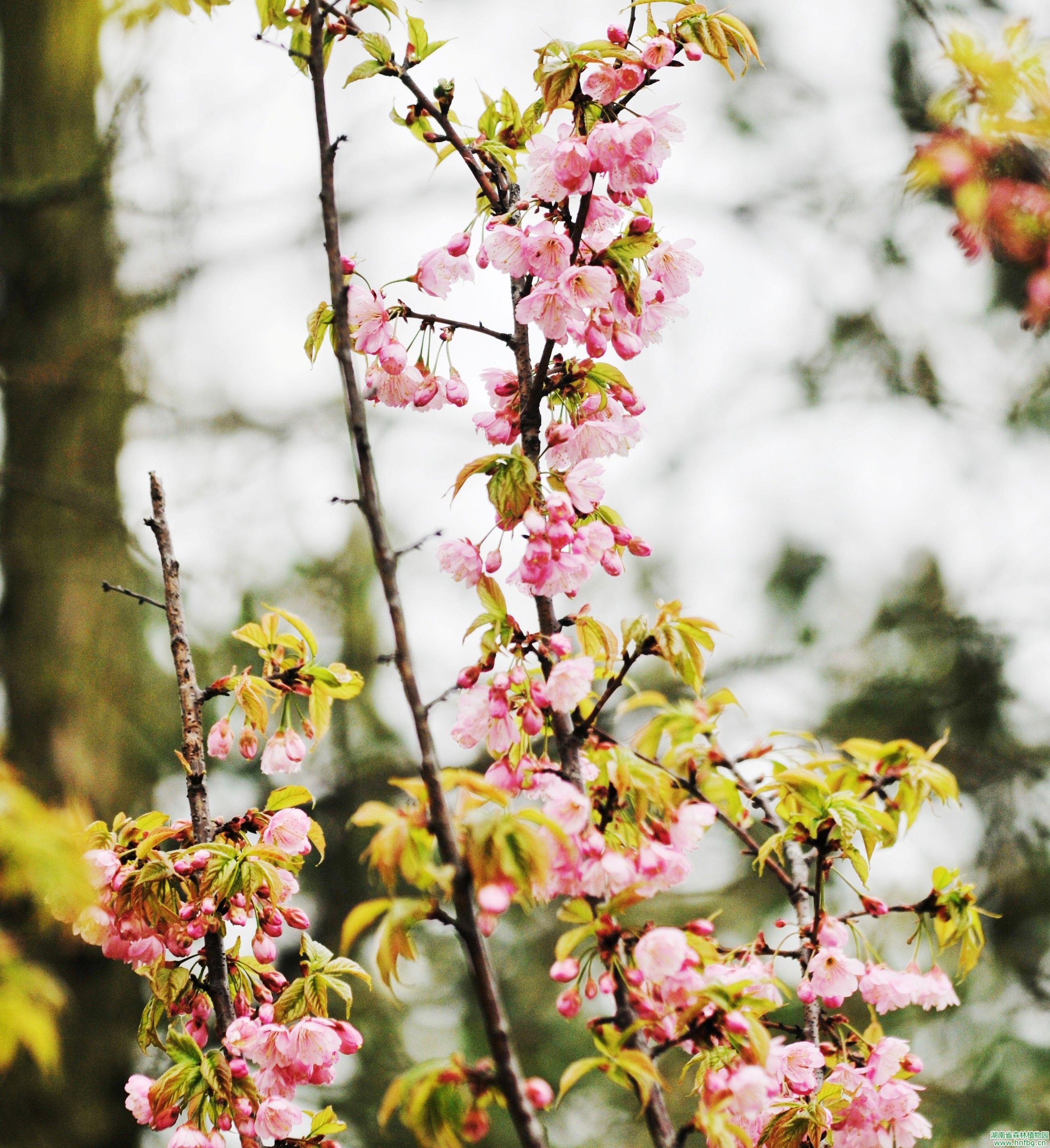 云南樱花与日本樱花同属早樱类樱花,早樱类樱花中绝大多数为白色、粉白色的单瓣花,红色的重瓣花极少。云南樱花属于我国樱花中的珍品,花色艳丽,原产于西藏东南部、云南西北部、福建武夷山,在海拔2000~3700米山坡、疏林、灌丛中生长良好。为满足广大市民赏樱需求,我园在2010年冬引种了云南樱花,2011年云南樱花第一次在低海拔地区开放,经过一年的适应性栽培,云南樱花在植物园再度绽放。