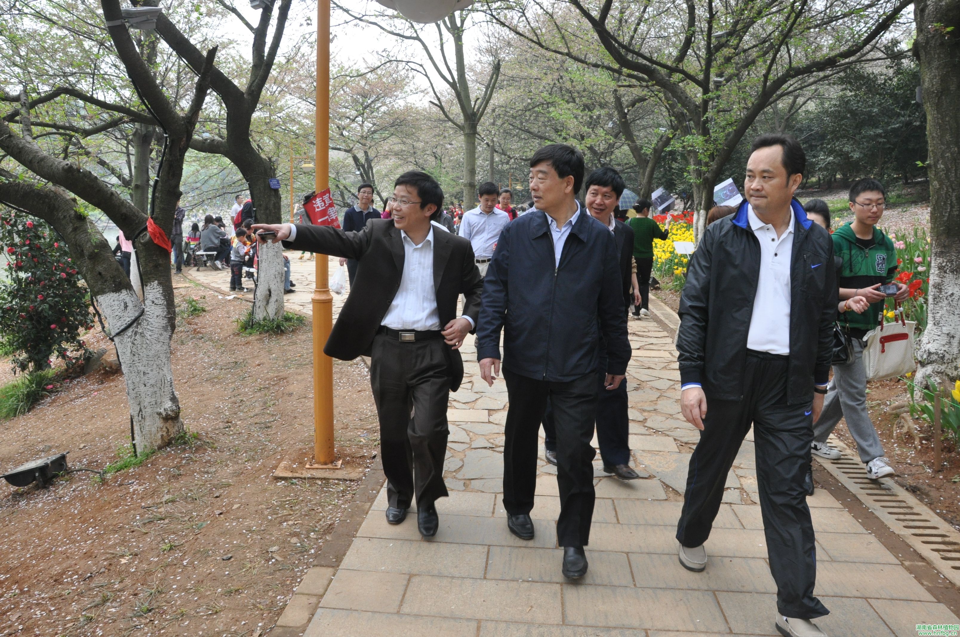 4月7日,省人民政府常务副省长于来山,省委常委、长株潭“两型社会”试验区工委书记张文雄一行在省林业厅副厅长胡长清、副巡视员吴剑波及厅办公室、省森林植物园主要领导的陪同下视察了2012湖南世界名花生态文化节。