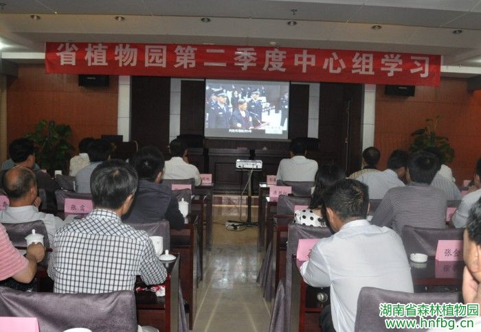 6月7日上午,我园召开中心组学习会议,集中观看了反腐倡廉宣传片,深入学习绿色湖南建设纲要。会议由园党委书记王明旭主持,省林业厅副巡视员柳开明应邀进行绿色湖南建设纲要解读。园领导班子成员、全园副科以上干部、副高职称以上科技人员50余人参加学习。