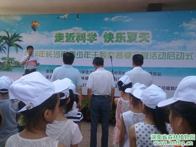 7月8日上午9点30分,由市科协、市关工委主办,湖南省森林植物园承办的2012年长沙市青少年“走进科学,快乐夏天”主题科普夏令营活动启动仪式在我园举行。出席启动仪式的领导有市人民政府副市长夏建平、市关工委常务副主任刘耀杰以及市科技协会、湖南科技馆、湖南省森林植物园的相关领导。