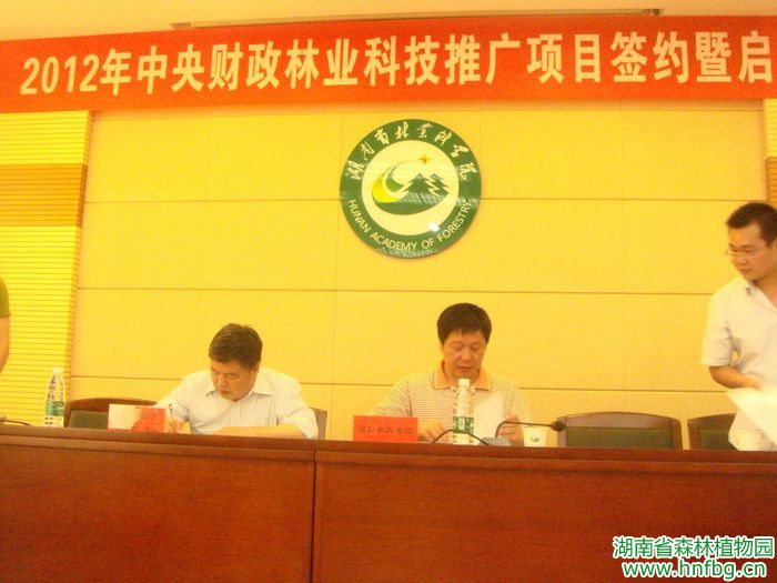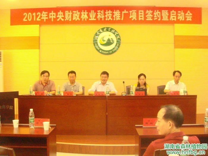 2012年7月10日,湖南省2012年中央财政林业科技推广项目签约暨启动会议在湖南省林科院隆重举行。湖南省财政厅农财处、省林业厅计财处和省林业科技推广总站的领导出席了会议。项目主持单位的各项目主持人或项目组成员和项目实施地的负责人及相关领导六十余人参加了会议。会议由省林业科技推广总站蒋胜铎副站长主持。