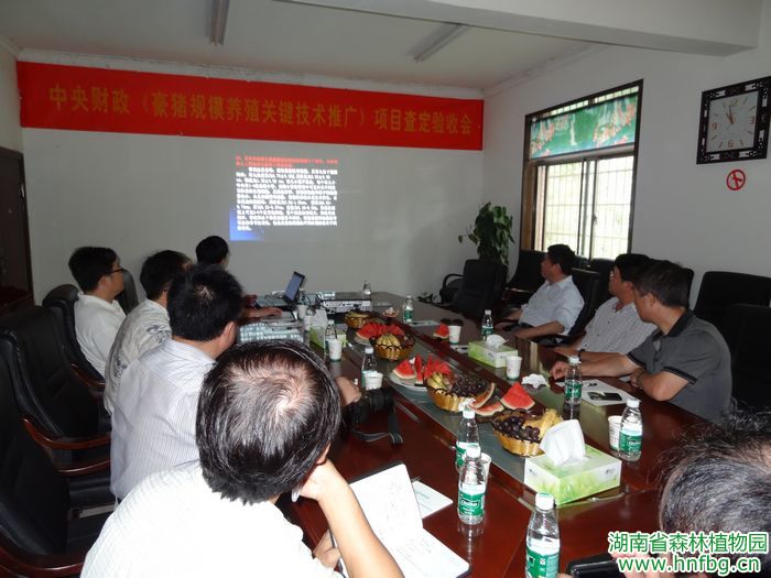 2012年7月24日湖南省林业厅组织相关专家,对我“中心”朱开明研究员承担的中央财政林业科技推广项目《豪猪规模养殖关键技术推广》(合同号:[2009]XT05号)进行了现场查定,专家组查看了“中心”和长沙市岳麓区坪塘林业站养殖场,听取了项目组的项目执行情况汇报,查阅了相关资料。最后专家组一致认为该项目全面完成了合同规定的指标,开创了林业科技推广项目野生动物之先河,建议组织项目验收。