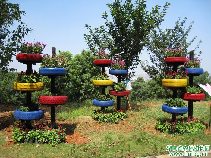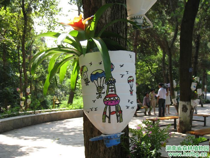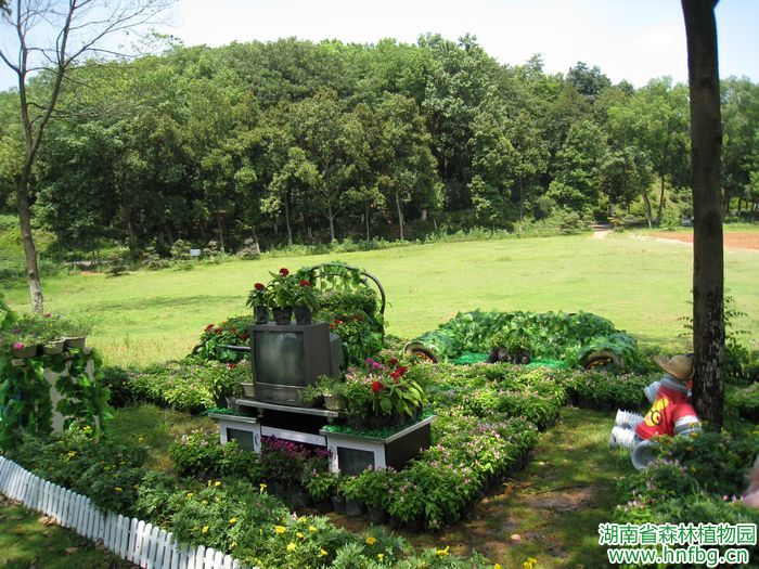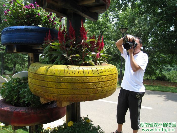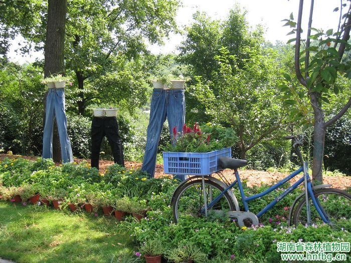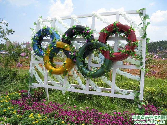 7月30日,湖南省森林植物园的“花·生活·艺术”创意花展火辣辣地开幕啦。我园本着热爱自然,热爱生活,共创美好和谐社会的宗旨,提倡健康环保生活,希望通过这次活动向游客展示花与各种生活用品搭配造景形成的奇妙效果,传达一种绿色创意艺术生活理念。更具特色的是这一次花展的作品全是由我园职工自己创意、自己动手创作出来的。你看,有轮胎做成的“奥运五环”、“多彩地生活”,轮胎花盆;有用废弃家具、电器为基调的“爱与生活”、“科技上的绿色”、 “源于家庭的艺术”;有以旧牛仔裤、旧单车为元素的园林小品;有以废弃木材为主题的“伐木场的春天”;有以涂鸦油壶为材料的创意花盆等等,各种园林小品各具特色,各有新意,值得好好欣赏。